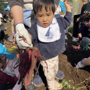 絵本の中やお歌ではお芋に触れていましたが実際に掘って出てくるところを見ると、大はしゃぎな子どもたち😁👍